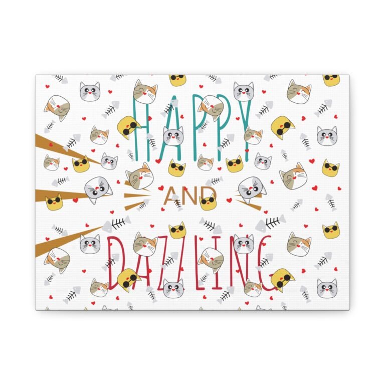 Whimsical Canvas Wall Art, Happy Dazzling Cat Decor, Cute Animal Prints, Nursery Wall Decor, Gift for Cat Lovers, Playful Home Decor