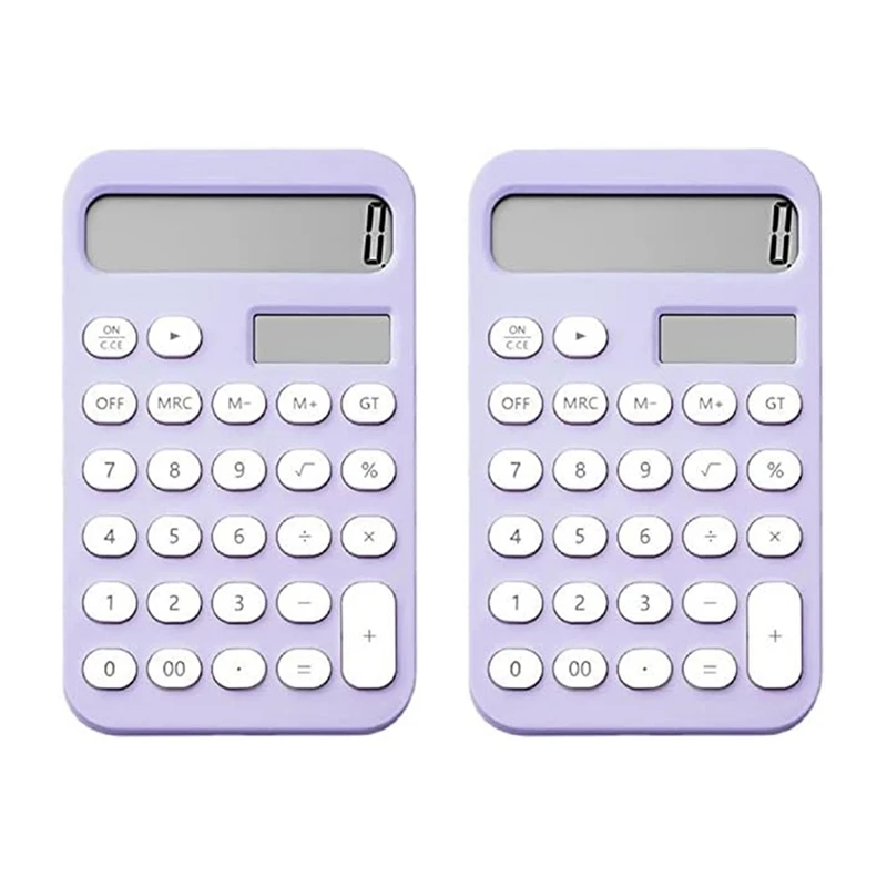 2 Pcs Desk Calculator Basic Calculator With LCD Display For Office And School Purple
