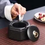Black Ceramic Ashtray Vintage Home Living Room Tea Table Ceramic Ashtray with Lid Bar Office Decoration Supplies Ashtray