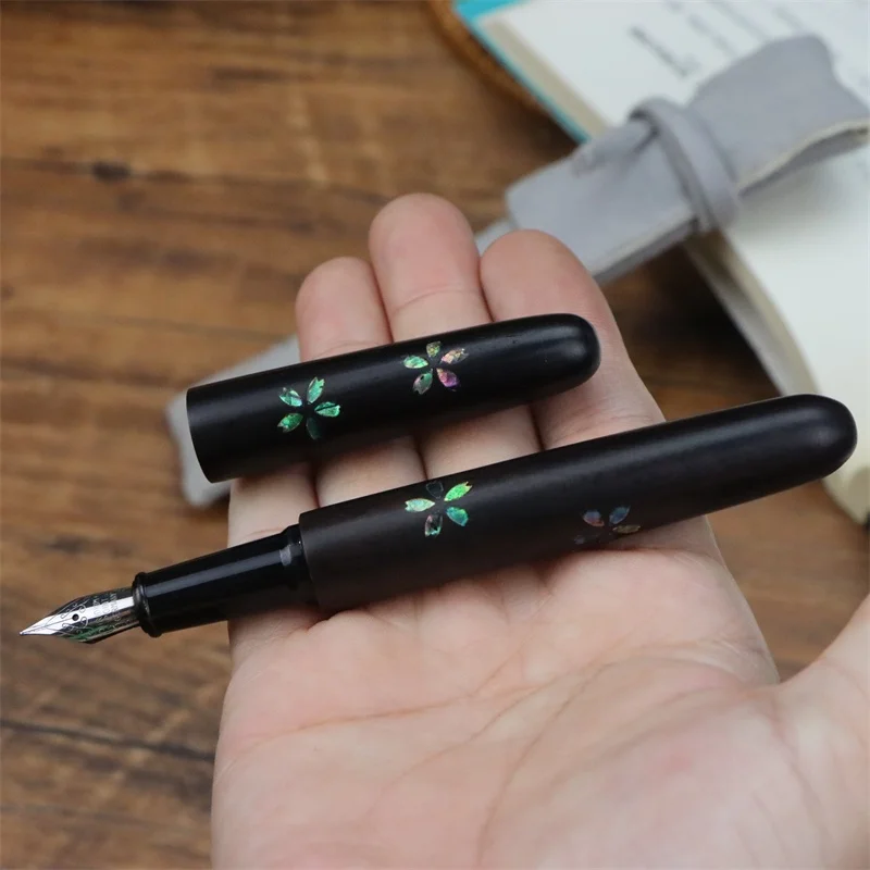 Ebony Wood Fountain Pen Five Star Mother of Pearl Solid Wood Business Signature Pen Fine Art High-end Collectible Fountain Pen