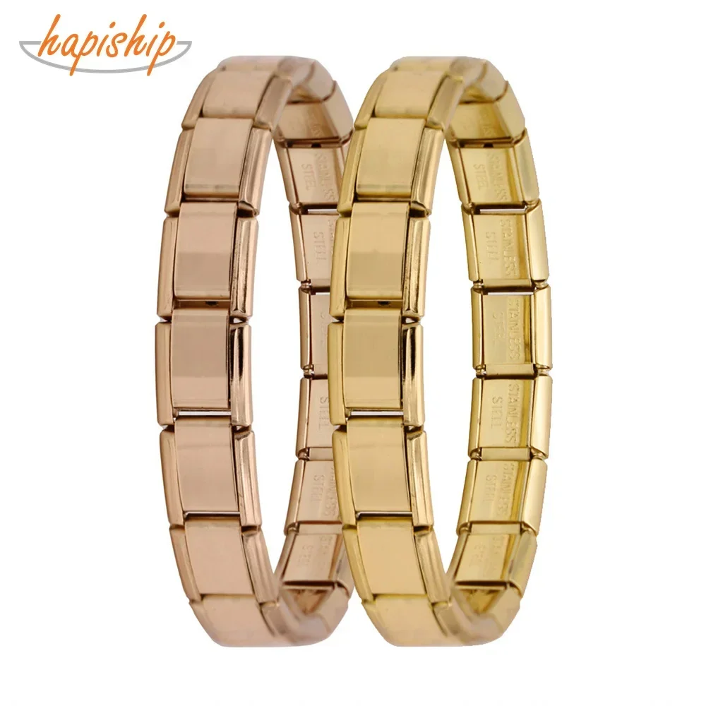 Hapiship Top Women’s Girl Jewelry 9mm Width Itanlian Elastic Charm Bracelet Fashion Stainless Steel Bangle Jewelry G096